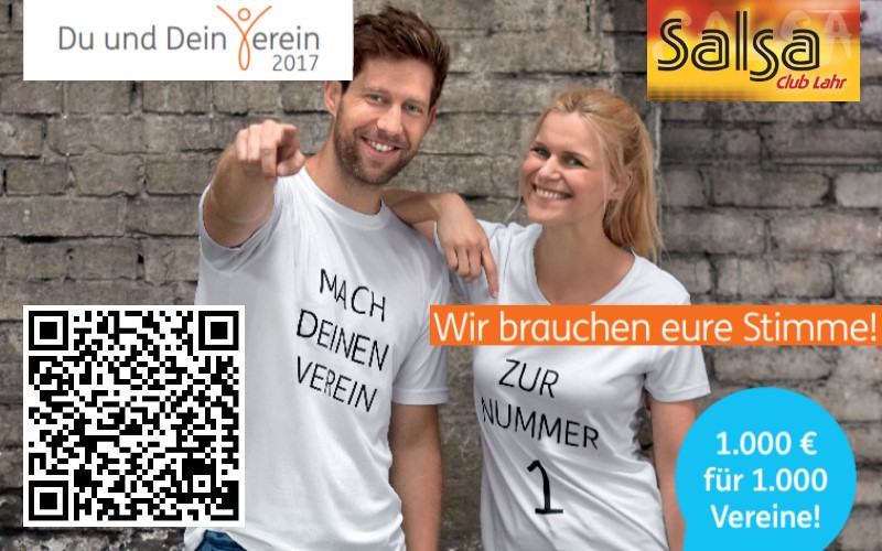 Der Salsa Club Lahr nimmt an „Du und Dein Verein“ teil, wodurch die ING-DiBa gemeinnützige Vereinsarbeit fördert. Mit eurer Unterstützung haben wir die Chance, 1.000€ für unsere Vereinskasse zu bekommen.